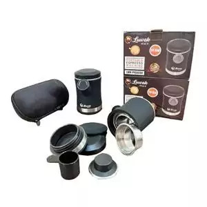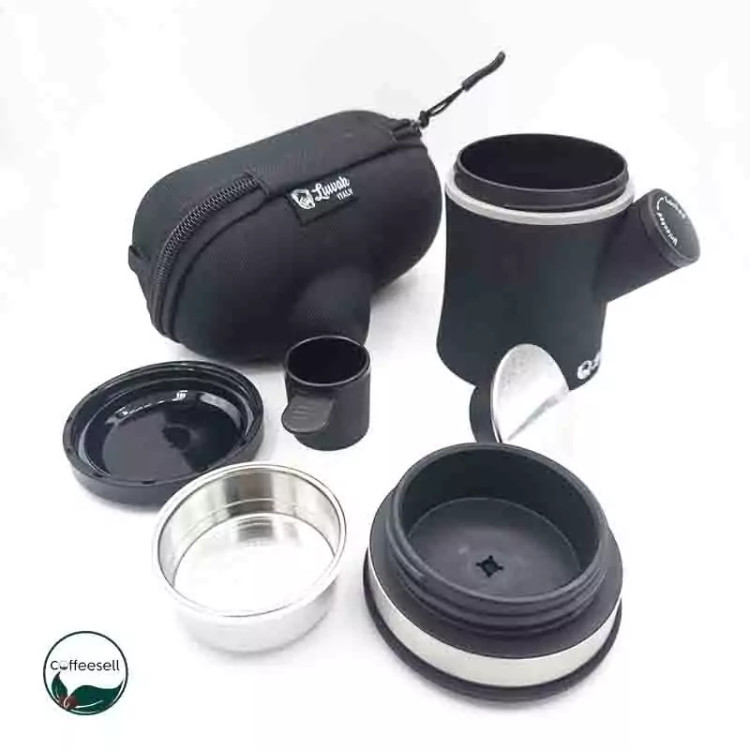قهوه ساز پمپی دستی اسپرسو ساز مسافرتی همراه مینی پرسو پیکاسو لواک Luwak portable espresso machine دارای 10 بار فشار دارای فیلتر استیل با کیفیت دارای درپوش سیلیکونی بسته حاوی پیمانه و تمپر میباشد. درست کردن قهوه با این نانوپرسو بسیار راحت است کافی است قسمت بالایی را با آب جوش (120 میل ) پر کنید پمپ را با چرخاندن باز کنید و بعد چند بار پمپ زدن قهوه شما آماده است.